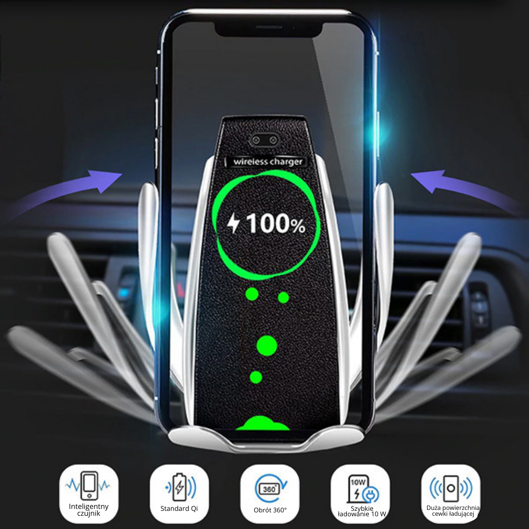 Ładowarka samochodowa została wyposażona w zaawansowaną technologię automatycznej indukcji, która wykrywa telefon i samoczynnie otwiera oraz zamyka ramiona uchwytu. Umożliwia to wygodną obsługę jedną ręką, bez konieczności używania przycisków. Po umieszczeniu telefonu w uchwycie ładowanie bezprzewodowe rozpoczyna się automatycznie.