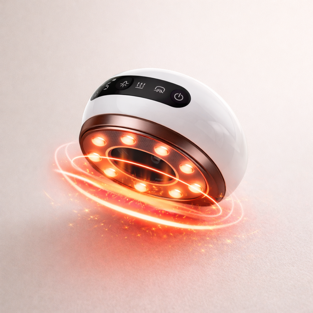 Urządzenie zapewnia profesjonalny masaż Gua Sha, działanie podciśnieniowe oraz terapię cieplną w jednym. Skutecznie rozluźnia napięcia mięśniowe, wspomaga detoksykację i poprawia krążenie.
