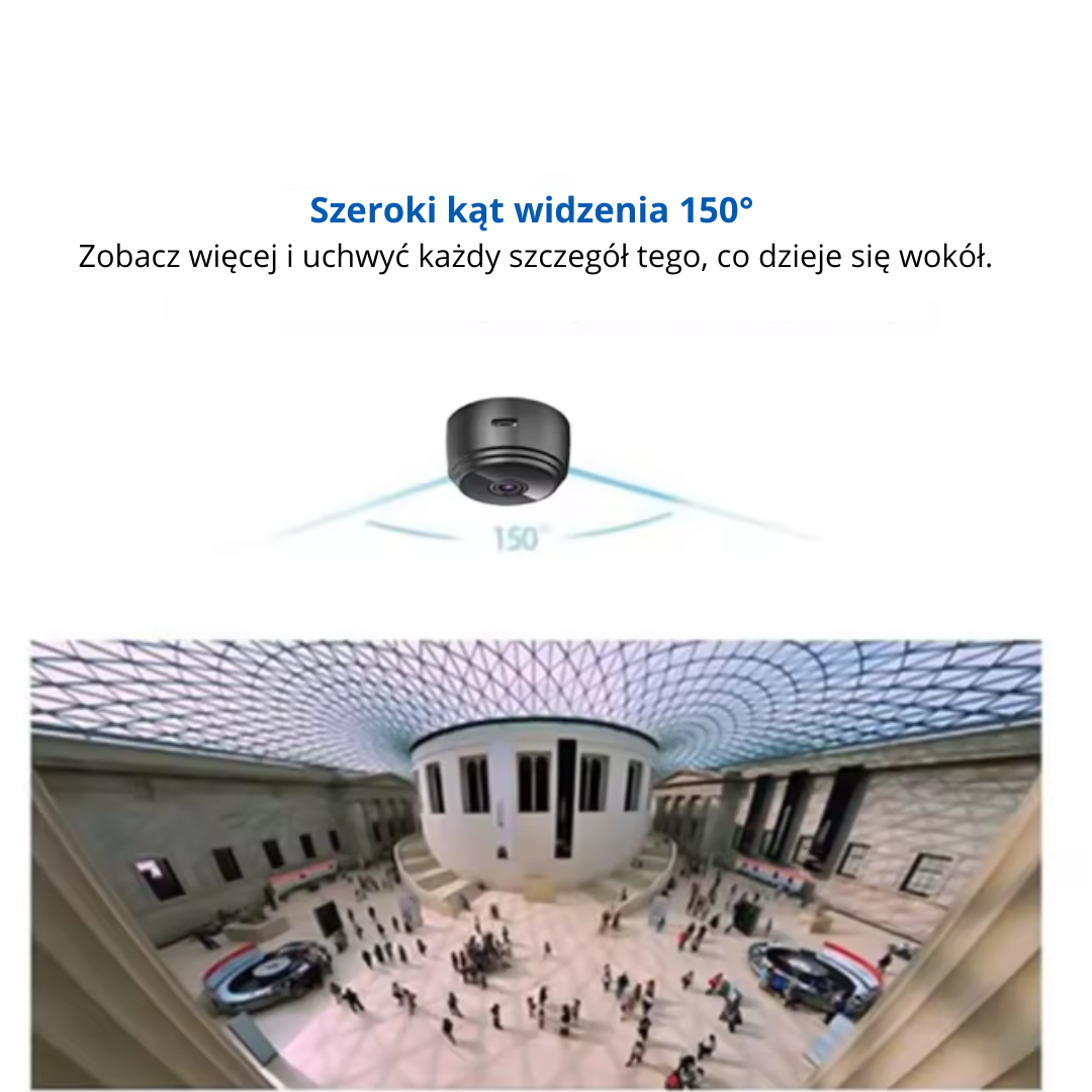 Obiektyw szerokokątny 150° – Obejmuje większy obszar, idealny do małych pomieszczeń.