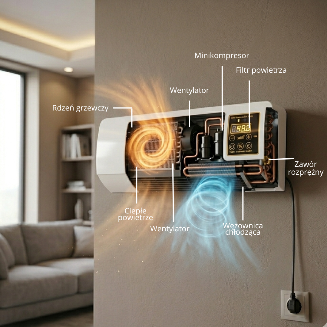 Moc 1200W – szybkie i skuteczne ogrzewanie lub chłodzenie pomieszczenia