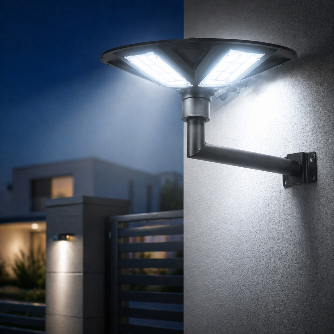 Ulepsz swoje przestrzenie zewnętrzne dzięki lampie solarnej LED z czujnikiem ruchu – inteligentnemu i energooszczędnemu rozwiązaniu oświetleniowemu, zaprojektowanemu z myślą o wydajnym oświetleniu i zrównoważonym użytkowaniu. Łącząc technologię zasilania solarnego z zaawansowanym wykrywaniem ruchu, ta trwała lampa o mocy 600W doskonale sprawdzi się w ogrodach, na ścieżkach, parkingach i wielu innych miejscach. Nie wymaga okablowania, oferuje szybki montaż oraz długotrwałą wydajność, jednocześnie pomagając obniżyć rachunki za energię i ślad węglowy.