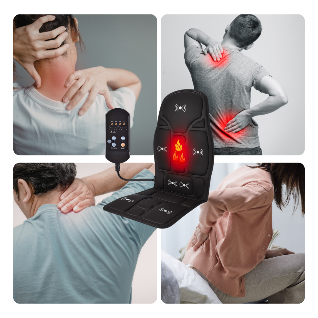 Mata masująca to wielofunkcyjne rozwiązanie relaksacyjne, zaprojektowane z myślą o zapewnieniu kojącego masażu wibracyjnego oraz delikatnej terapii cieplnej dla pleców, bioder i ud. Dzięki wielu trybom masażu, regulowanej intensywności oraz wygodnemu pilotowi, zapewnia komfort i ulgę zarówno w domu, jak i w podróży.