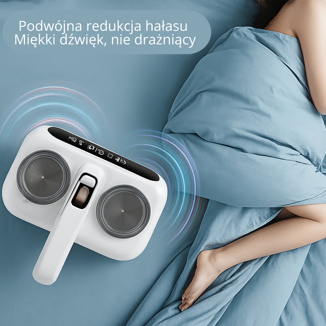 Podwójny Młotek Wibracyjny I Silne Ssanie – Wysokowydajny silnik w połączeniu z technologią podwójnego uderzenia skutecznie usuwa roztocza i ich odchody z głębi tkanin, poprawiając higienę i jakość snu.