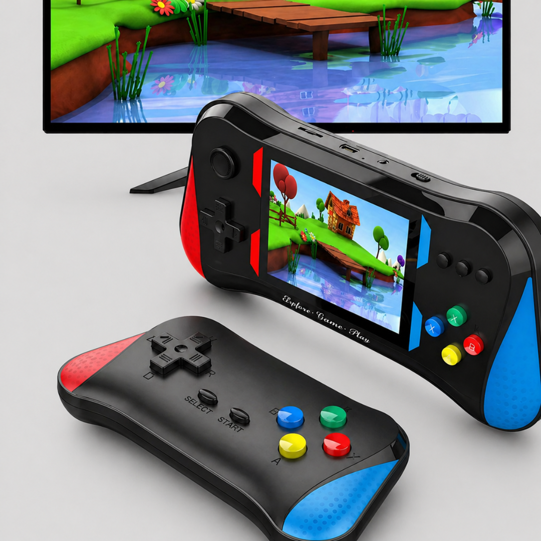 Poznaj mini przenośną konsolę do gier Retoo, kompaktowe urządzenie retro stworzone do zabawy w domu i w podróży. Dzięki 500 wbudowanym grom, ekranowi 3.5 cala i możliwości podłączenia do telewizora, ta przenośna konsola łączy klasyczną nostalgię gier z praktyczną codzienną rozrywką. Lekka konstrukcja, akumulator i dołączony przewodowy pad sprawiają, że to świetny wybór zarówno do gry solo, jak i wspólnej zabawy.