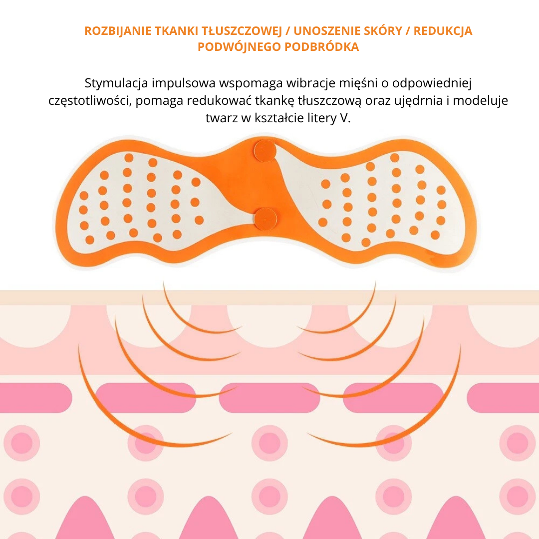 V-Shape EMS Masażer twarzy lifting podbródka wykorzystuje technologię Electrical Muscle Stimulation (EMS), która delikatnie aktywuje mięśnie twarzy, wspierając poprawę jędrności i elastyczności skóry.