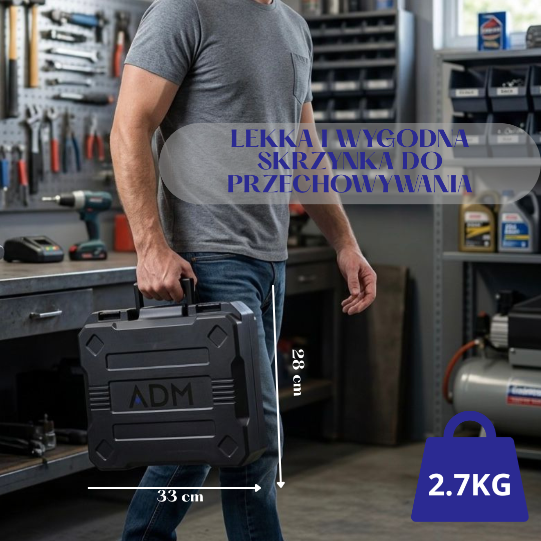 WKRĘTARKA AKUMULATOROWA ADM+DWA AKUMULATORY 12V, ZESTAW 77 szt, SKU: 395