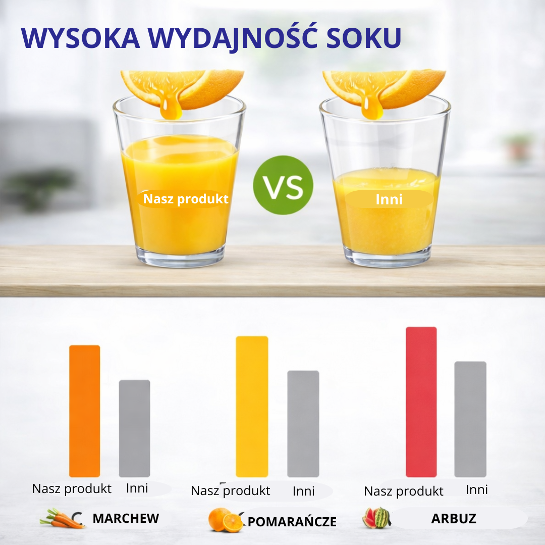 1.Moc: 600W dla efektywnego wyciskania soku