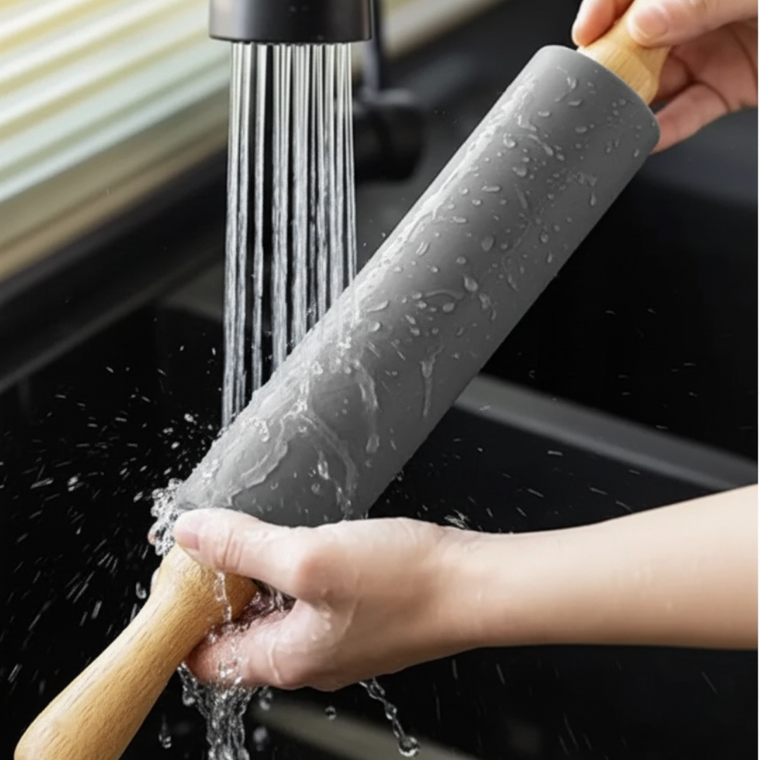 Silikonowy wałek z drewnianymi uchwytami – połączenie klasyki i nowoczesności